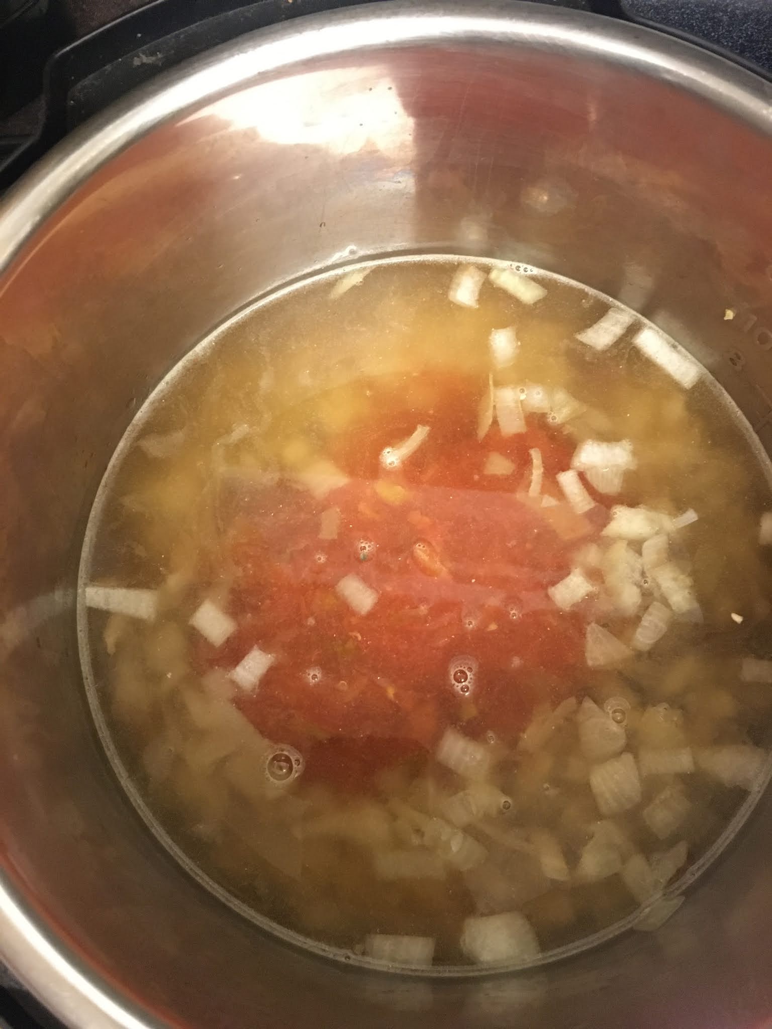 Turn Instant Pot onto saute and add oil. Cook onion until it starts to turn translucent.